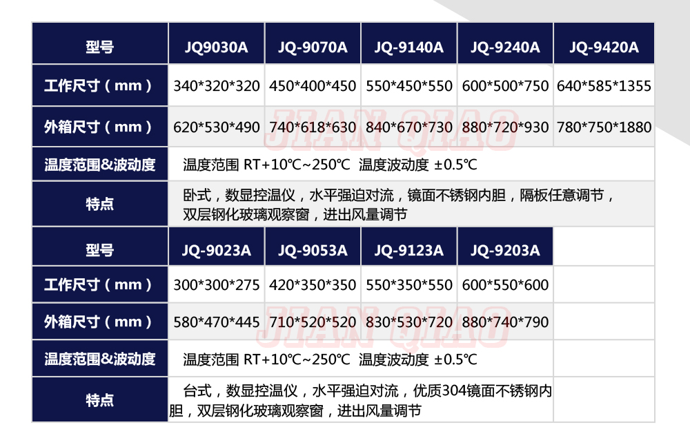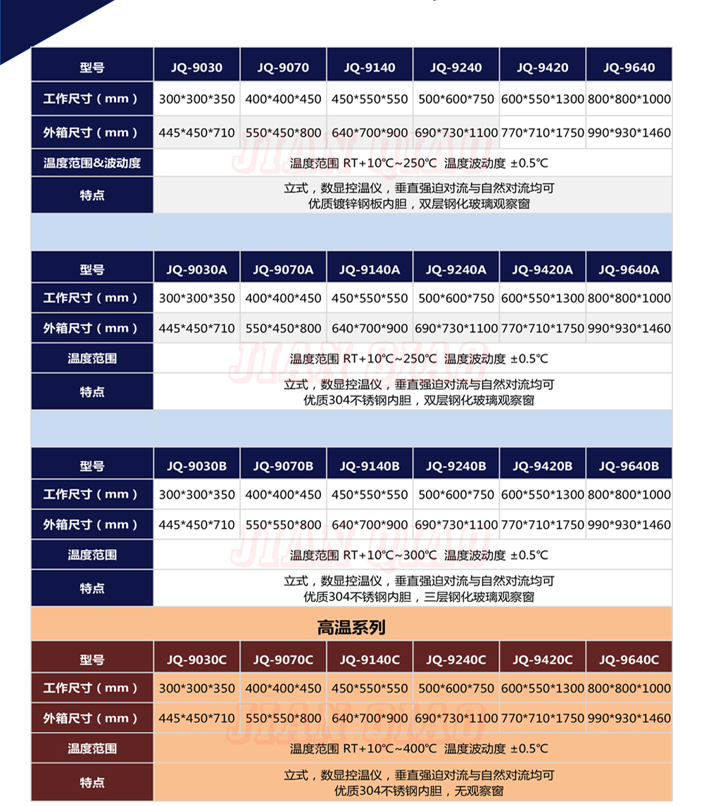 產(chǎn)品型號:JQ-9640 品牌:劍 喬 用途:精密高溫箱用于對電子電工、汽車摩托、航空航天橡膠、塑膠、金屬、船舶兵器、高等院校、科研單位等相關產(chǎn)品的零部件及材料在高溫恒溫變化的情況下,檢驗其各項性能指標。咨詢熱線:13829135130