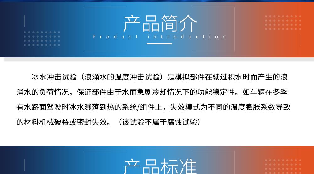 產(chǎn)品型號(hào):JQCW-1000L 品牌:劍 喬 用途:冰水沖擊試驗(yàn)(浪涌水的溫度沖擊試驗(yàn))是模擬部件在駛過積水時(shí)而產(chǎn)生的浪涌水的負(fù)荷情況,保證部件由于水而急劇冷卻情況下的功能穩(wěn)定性。如車輛在冬季有水路面駕駛時(shí)冰水濺落到熱的系統(tǒng)/組件上,失效模式為不同的溫度膨脹系數(shù)導(dǎo)致的材料機(jī)械破裂或密封失效咨詢熱線:13829135130