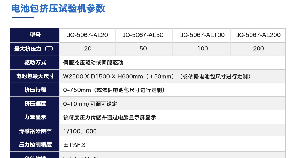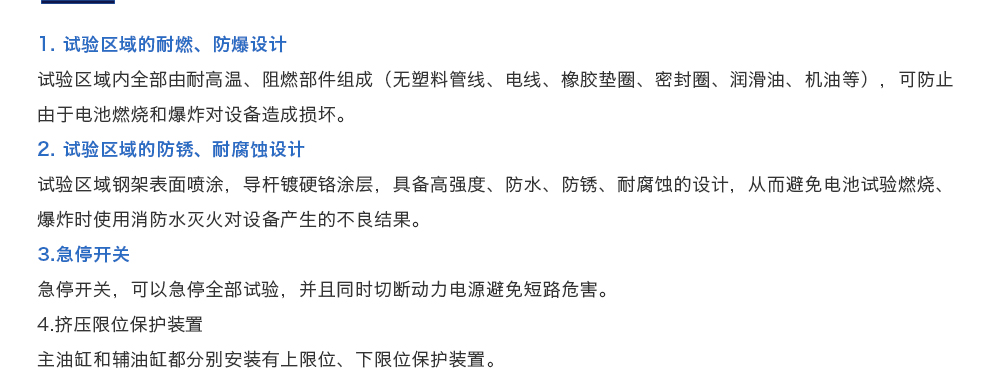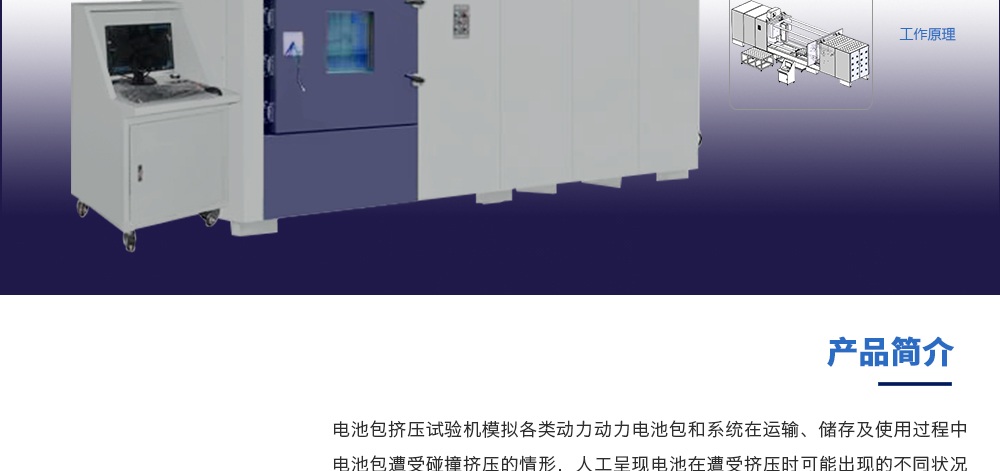 用途:電池包擠壓試驗(yàn)機(jī)模擬各類動(dòng)力動(dòng)力電池包和系統(tǒng)在運(yùn)輸、儲(chǔ)存及使用過程中電池包遭受碰撞擠壓的情形,人工呈現(xiàn)電池在遭受擠壓時(shí)可能出現(xiàn)的不同狀況。