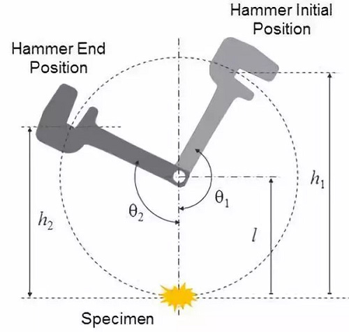 制備有一定形狀和尺寸的金屬試樣,使其具有U形缺口或V形缺口,在夏比沖擊試驗(yàn)機(jī)上處于簡支梁狀態(tài),以試驗(yàn)機(jī)舉起的擺錘作一次沖擊,使試樣沿缺口沖斷,用折斷時擺錘重新升起高度差計算試樣的吸收功,即為Aku和Akv。