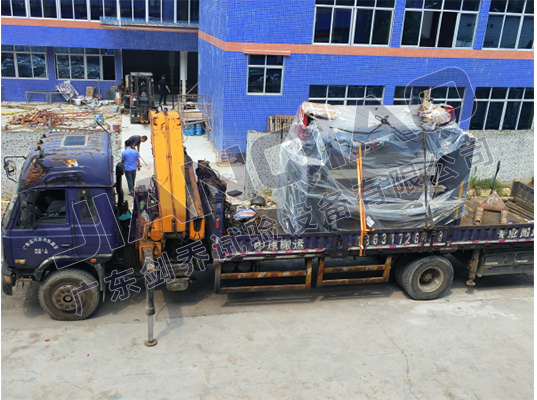 注:(圖為廣東劍喬引進數(shù)控折彎機現(xiàn)場卸貨圖)