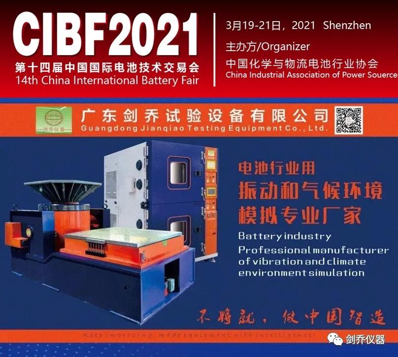 2021年3月19-21日,廣東劍喬試驗(yàn)設(shè)備有限公司【劍喬儀器】將攜旗下最新試驗(yàn)設(shè)備亮相2021年的第一場展會(huì)—(CIBF2021)“第十四屆中國國際電池技術(shù)交流會(huì)/展覽會(huì)”。現(xiàn)場展示:振動(dòng)試驗(yàn)系統(tǒng)、溫濕度振動(dòng)三綜合箱、電池?zé)釣E用試驗(yàn)箱、電池短路試驗(yàn)箱、高加速?zèng)_擊試驗(yàn)臺(tái)、高低溫防爆試驗(yàn)箱、等試驗(yàn)設(shè)備及動(dòng)力電池相關(guān)試驗(yàn)解決方案。