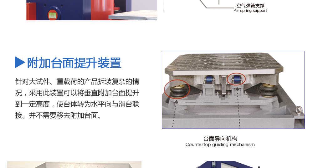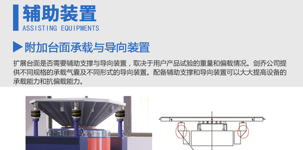 產(chǎn)品型號: 品牌:劍 喬 用途:擴展臺面是否需要輔助支撐與導向裝置,取決于用戶產(chǎn)品試驗的重量和偏載情況。劍喬公司提供不同規(guī)格的承載氣囊及不同形式的導向裝置。配備輔助支撐和導向裝置可以大大提高設備的承載能咨詢熱線:13829135130